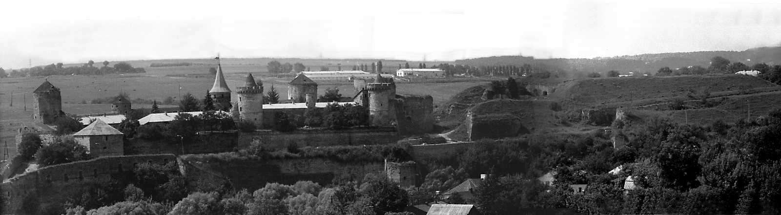 1979 р. Панорама Старого і Нового замків з північного сходуРозмір зображення: 1600:440 піксел 1989 р. 21 серпня. Фото М.І.Жарких. Негатека, № 601-25+8. |