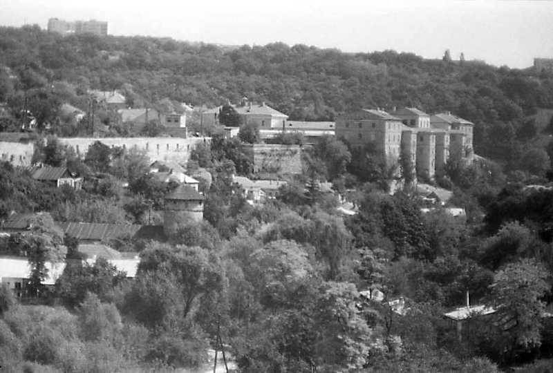 Руська брама, оборонний мур над нею та Віттові казарми. Вигляд з північного заходу, з Турецького моста. 1989 р. 21 серпня. Фото М.І.Жарких. Негатека, № 603-30.