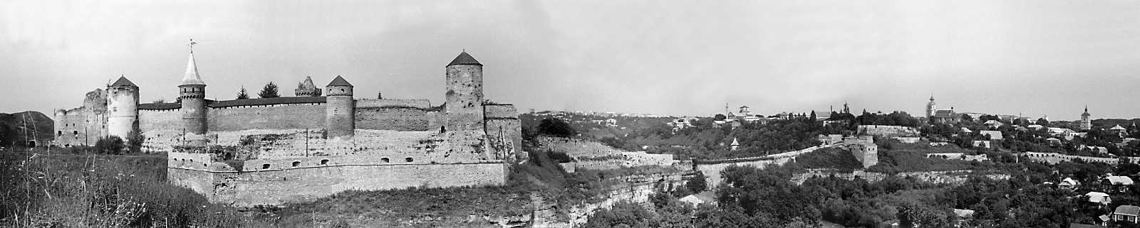 1989 р. Панорама Старого замку і Старого міста з півдняРозмір зображення: 1600:321 піксел 1989 р. 21 серпня. Фото М.І.Жарких. Негатека, № 606-15+8. |