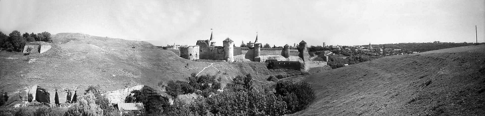 1996 р. Панорама Нового і Старого замків з південного заходуРозмір зображення: 1959:470 піксел 1996 р. 13 серпня. Фото М.І.Жарких. Негатека, № 910-33, 34, 35. |