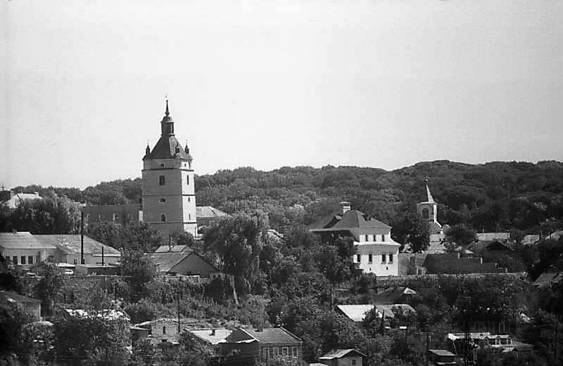 Вид на вірменську частину міста від замку. Зліва – велика за розмірами дзвіниця Миколаївського вірменського собору; справа – менша дзвіниця Благовіщенської вірменської церкви.