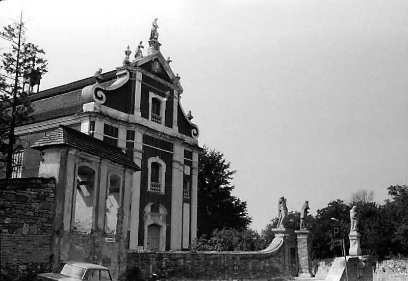 1989 р. Дзвіниця, костел і ґанок. Вигляд з північного сходу