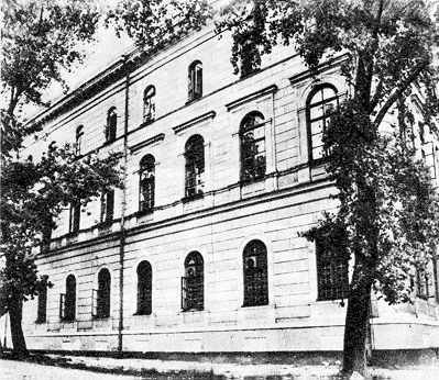 ДВОРЯНСКОГО СОБРАНИЯ ДОМ, 1857 – 1893 гг. Перестраивался в конце XIX в. Каменный, трехэтажный, с двумя подвалами. Перекрытия плоские. Планировка (современная) секционная, западный и южный фасады рустованы. Центральная ось главного южного фасада подчеркнута рустованными лопатками. Окна с полуциркульными перемычками, на втором этаже – с пилястрами и прямыми сандриками. Венчающий карниз из лекальных кирпичей. Крыша четырехскатная по деревянным стропилам. Кровля железная.