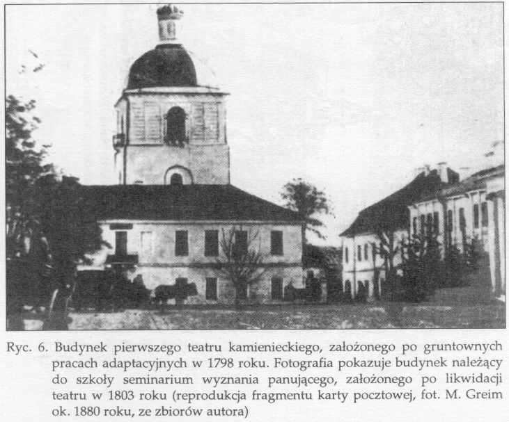 Духовна семінарія і церква св.Іоана. Фото Міхала Грейма десь 1880 р., перенесене на поштівку Джерело: Kamieniec Podolski: studia z dziejów miasta i regionu, Kraków, 2000, t. 1, s. 90.