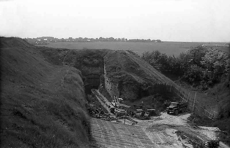 1977 р. Вал західної куртини і південний півбастіон. Вигляд з півночіРозмір зображення: 800:514 піксел 1977 р. 7 червня. Фото М.І.Жарких. Негатека, № A299-20. |