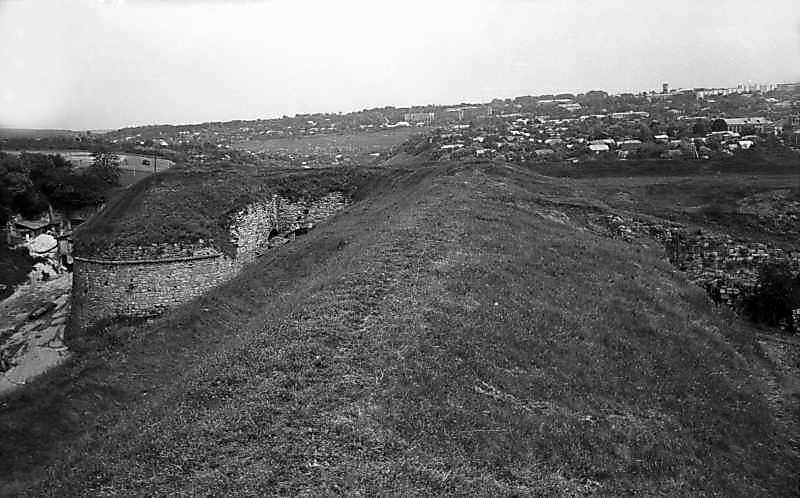 1977 р. Вал західної куртини і північний півбастіон. Вигляд з південного сходуРозмір зображення: 800:498 піксел 1977 р. 7 червня. Фото М.І.Жарких. Негатека, № A300-07. |