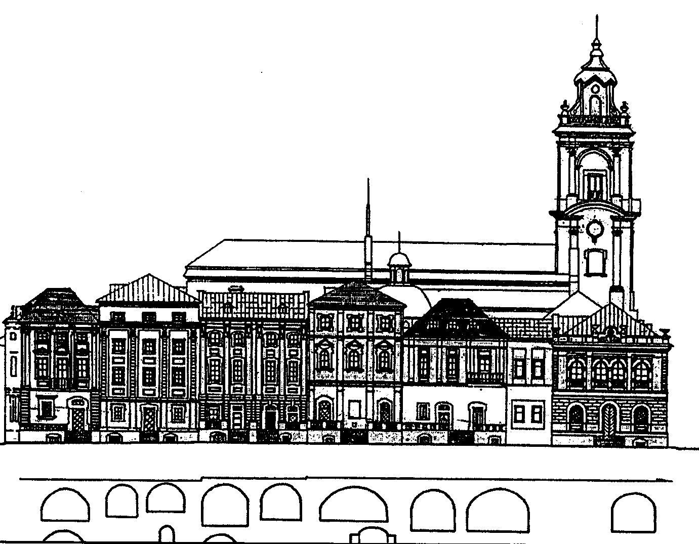 Реконструкція забудови 18 ст. південного фронтуРозмір зображення: 1381:1075 піксел Джерело: Пам’ятки України, 1999 р., № 1, с. 106. |