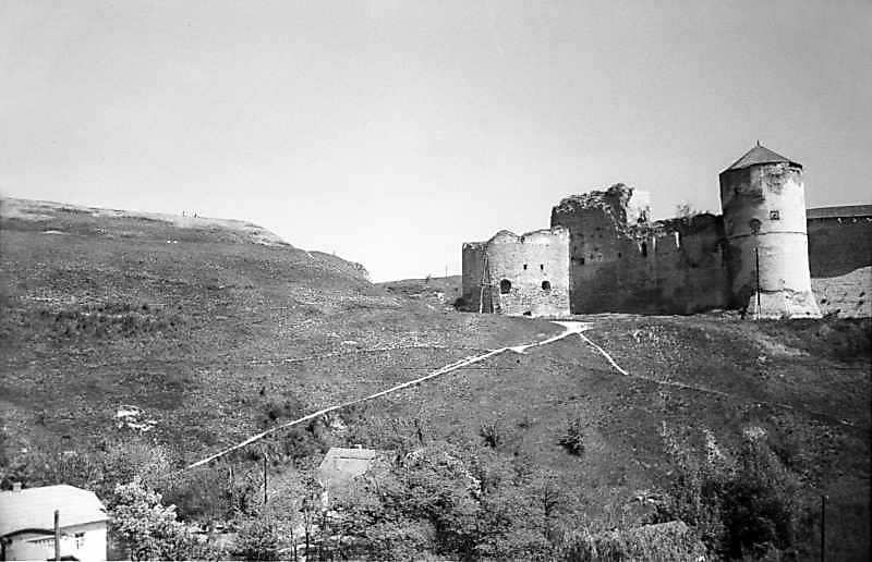 Частина Нового замку і західна частина Старого замкуРозмір зображення: 800:516 піксел 1979 р. 16 травня. Фото М.І.Жарких. Негатека, № 094-33. |