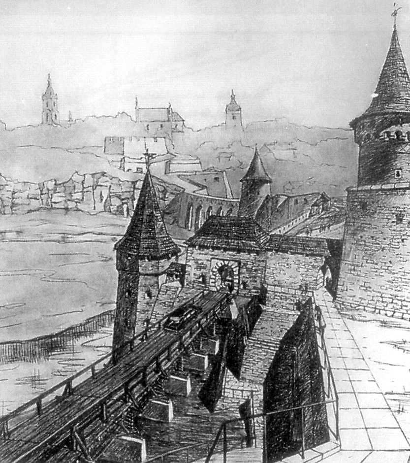 Пільна брама з мостом. Проект реставрації Є.Пламеницької та А.Тюпича Розмір зображення: 833:940 піксел Попередня сторінка | Вище | Наступна сторінка