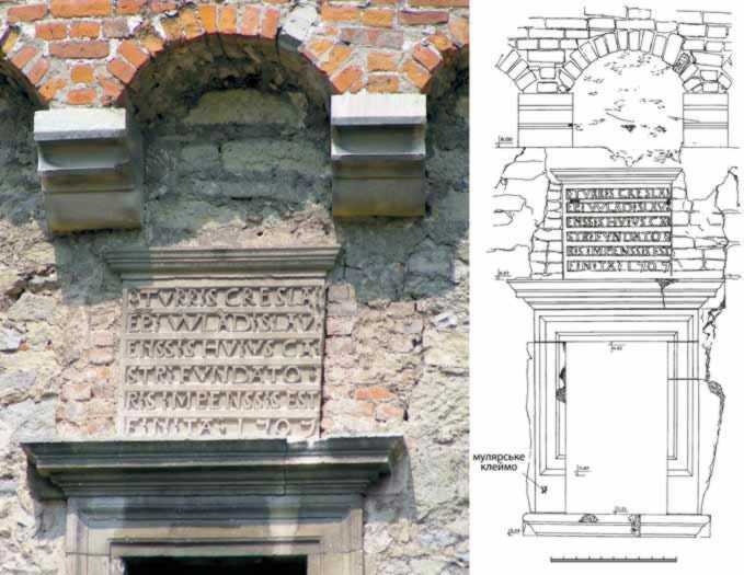 БАШТА КРЕСЛАВА ЄПИСКОПА ВЛАДИСЛАВА ЦЬОГО УКРІПЛЕННЯ ЗАСНОВНИКА НА [ЙОГО] КОШТИ ЗАКІНЧЕНА 1505