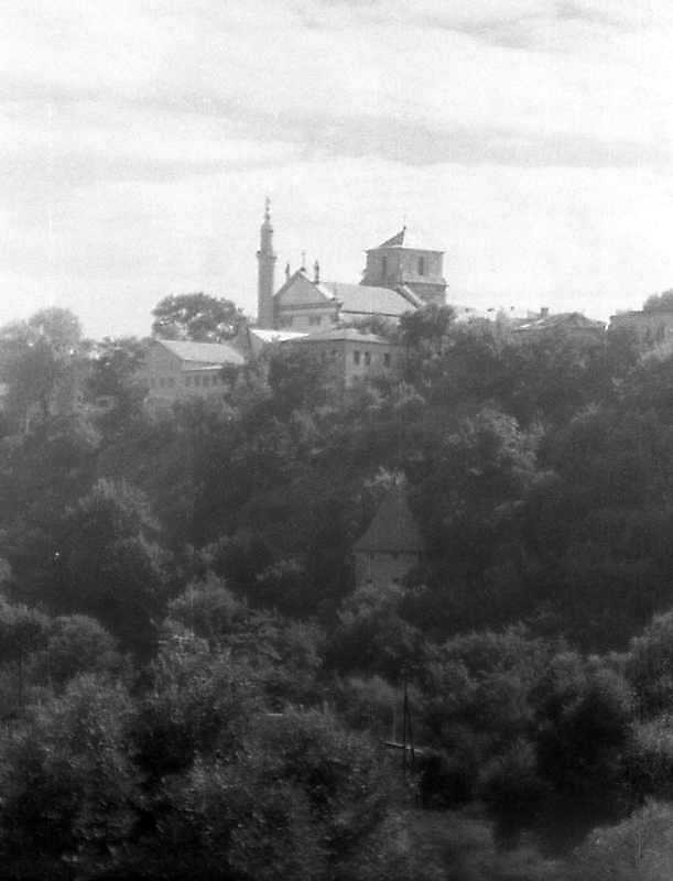 1995 р. Кафедральний костел і башта на броді. Вигляд з південного заходуРозмір зображення: 611:800 піксел 1995 р. 29 липня. Фото М.І.Жарких. Негатека, № 868-20. |