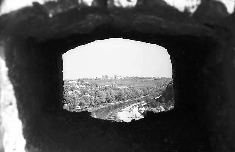 1979 р. Вид крізь бійницю на р.Смотрин, в напрямку на північРозмір зображення: 800:519 піксел 1979 р. 16 травня. Фото М.І.Жарких. Негатека, № 092-06. |
