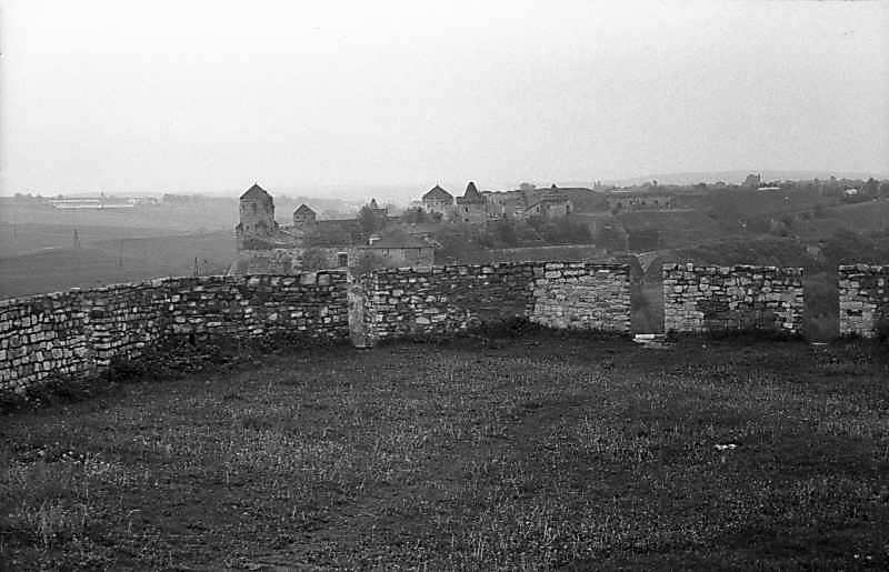 1985 р. Площадка бастіону на тлі Старого і Нового замків. Вигляд зі сходуРозмір зображення: 800:515 піксел 1985 р. 19 травня. Фото М.І.Жарких. Негатека, № 287-10. |