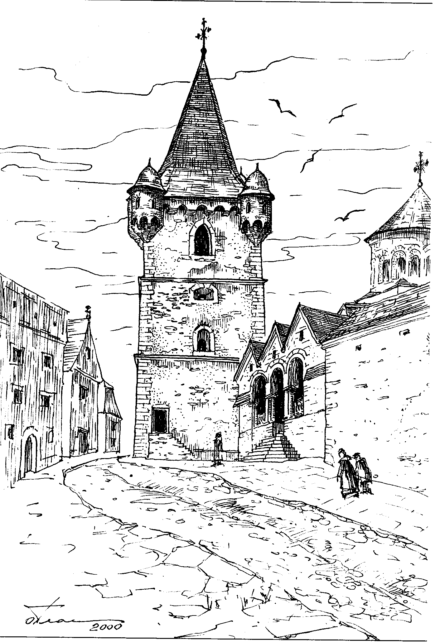Вигляд церкви на кінець XVI – XVII ст. Реконструкція О.Пламеницької Розмір зображення: 1395:2060 піксел Попередня сторінка | Вище | Наступна сторінка