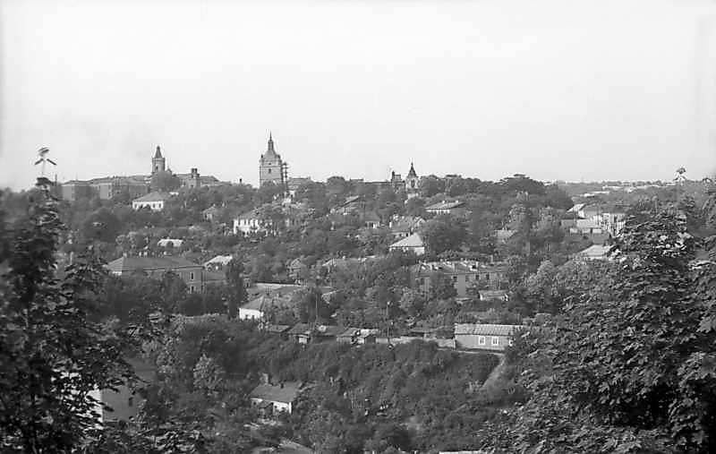 1977 р. Панорама центральної частини Старого міста з південного заходуРозмір зображення: 800:507 піксел 1977 р. 7 червня. Фото М.І.Жарких. Негатека, № A303-36. |