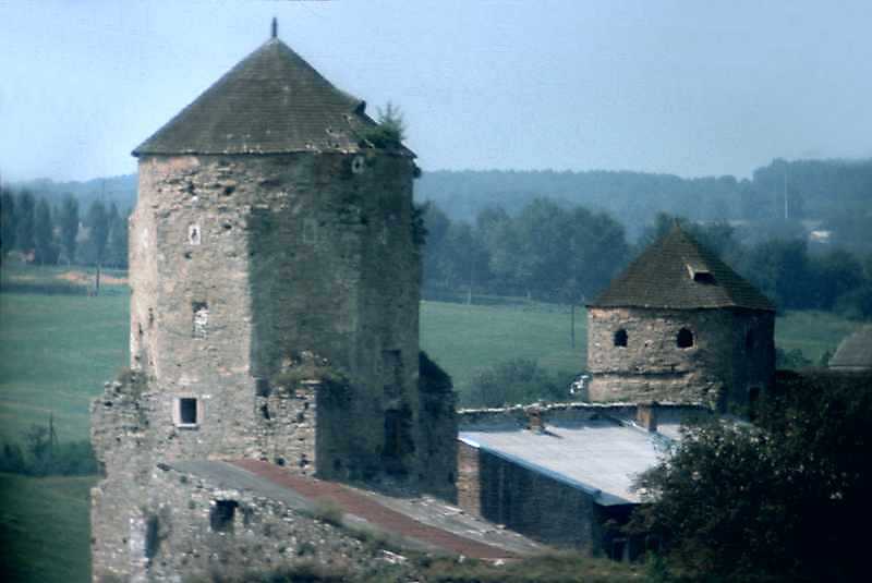 Башти Папська та Ковпак. Вигляд зі сходуРозмір зображення: 800:535 піксел 1989 р. 21 серпня. Фото М.І.Жарких. Слайдотека. |