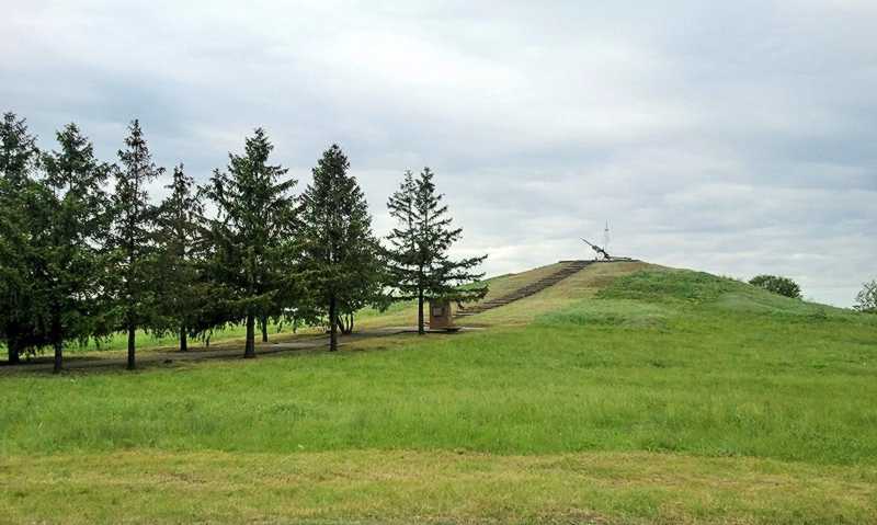 На вершині встановлена гармата на пам’ять про бої радянців проти німців наприкінці 1943 р.