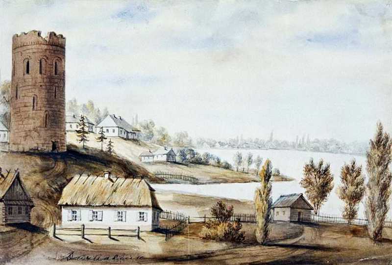 Widok ogólny z wieżą dawnego zamku i synagogą krytą dachem łamanym. Dat.: Kamieniec Litewski 20 Kwiet. 1876. Rys. ołówkiem podmalowany akwarelą. 19,4 x 29 cm. Muzeum Narodowe, Kraków. III-r.a. 4372 – odwrocie. (Teka Grodzieńska). [Katalog rysunków architektonicznych ze zbiorów Muzeum narodowego w Krakowie. 1. Rysunki Napoleona Ordy / Opracowały Zofia Kucielska i Zofia Tobiaszowa. – Warszawa: Państwowe wydawnictwo naukowe, 1975, Nr. 290]