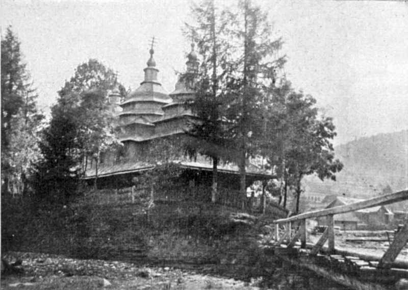 [1937 р.] Загальний виглядРозмір зображення: 800:568 піксел Церква 1872 р. (дерев.). Джерело: Драган М. Українські деревляні церкви. – Льв.: 1937 р., т. 2, с. 99. |
