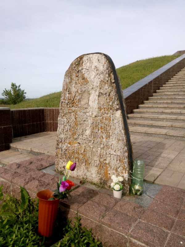 Надгробна плита з місця першого поховання І. Д. Сірка, перенесена до підніжжя кургану, на сучасне місце воховання.