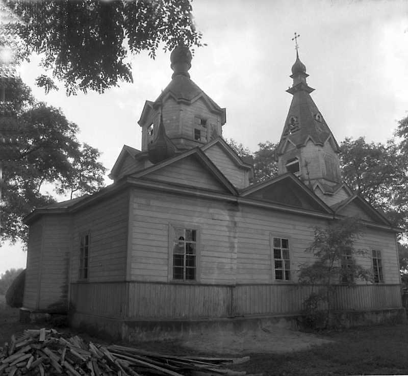 Карасинівка. Дерев.церква: орієнтація вівтаря 93°, на околиці села на вул. (С4). Спостереження М.І.Жарких, 24 серпня 1994 р.