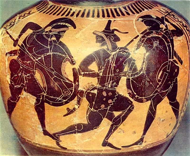 Сцена війни Розмір зображення: 800:658 піксел Джерело: Античне мистецтво. – К.: Мистецтво, 1977 р., № 21. Вкладені елементи Півпостать лівого грека Півпостать варвара Півпостать правого грека
