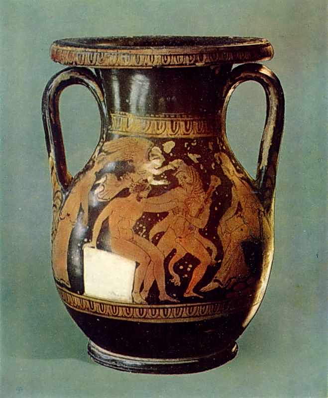 Пеліка червонофігурна з зображенням Геракла із Керчі. Розпис кола «Майстра Геракла». Аттіка. IV ст. до н. е. Глина. Висота 33 см. Керченський історико-археологічний музей.