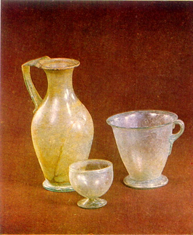 В I – III вв. н. э. стеклянные сосуды были высокого качества и разнообразных форм. Многие формы, например кувшина и кубка, почти без изменений дошли до наших дней и широко применяются в быту.