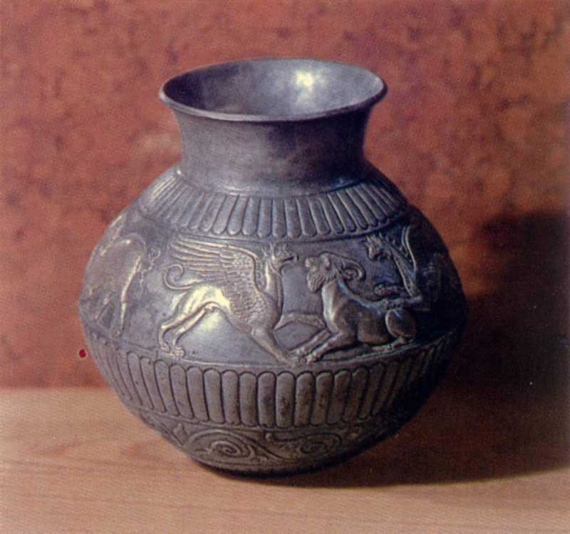 Загальний виглядРозмір зображення: 800:749 піксел Срібний келих (IV ст. до н. е., курган Куль-Оба). Джерело: Історія української культури. – К.: 2001 р., т. 1, с. 343. |