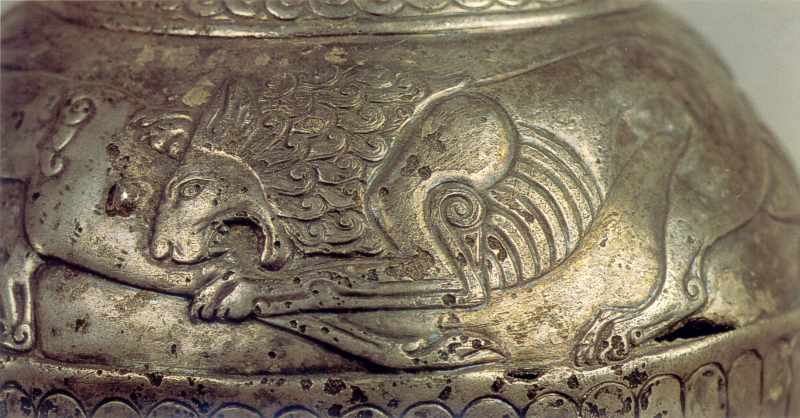 Лев Розмір зображення: 800:418 піксел Джерело: Scythian art. – Leningrad: Aurora art publishers, 1986, № 191. Вкладені елементи Пащека