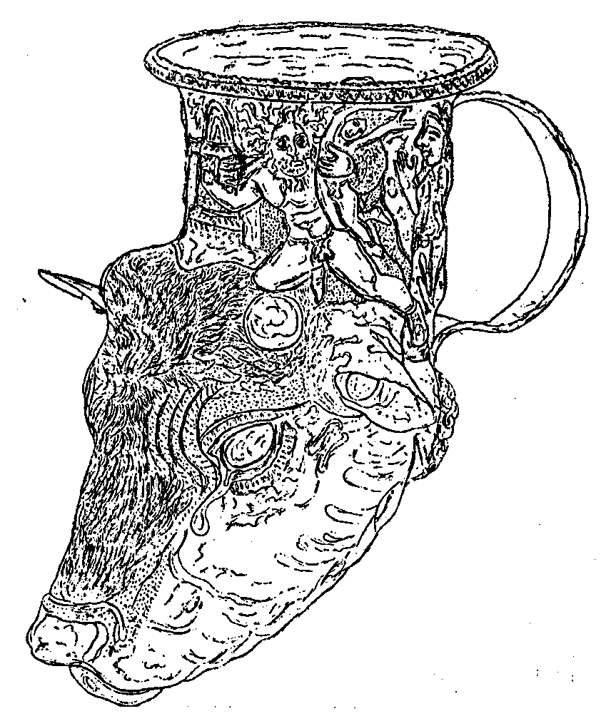 РитонРозмір зображення: 849:1018 піксел Ритон у вигляді голови бика (III – II ст. до н. е., Пантікапей). Джерело: Історія української культури. – К.: 2001 р., т. 1, с. 433. |