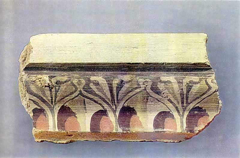 Фрагмент розписного карниза з Керчі. II ст. до н. е. Вапняк. Розміри 14: 7,5 см. Київський історичний музей.