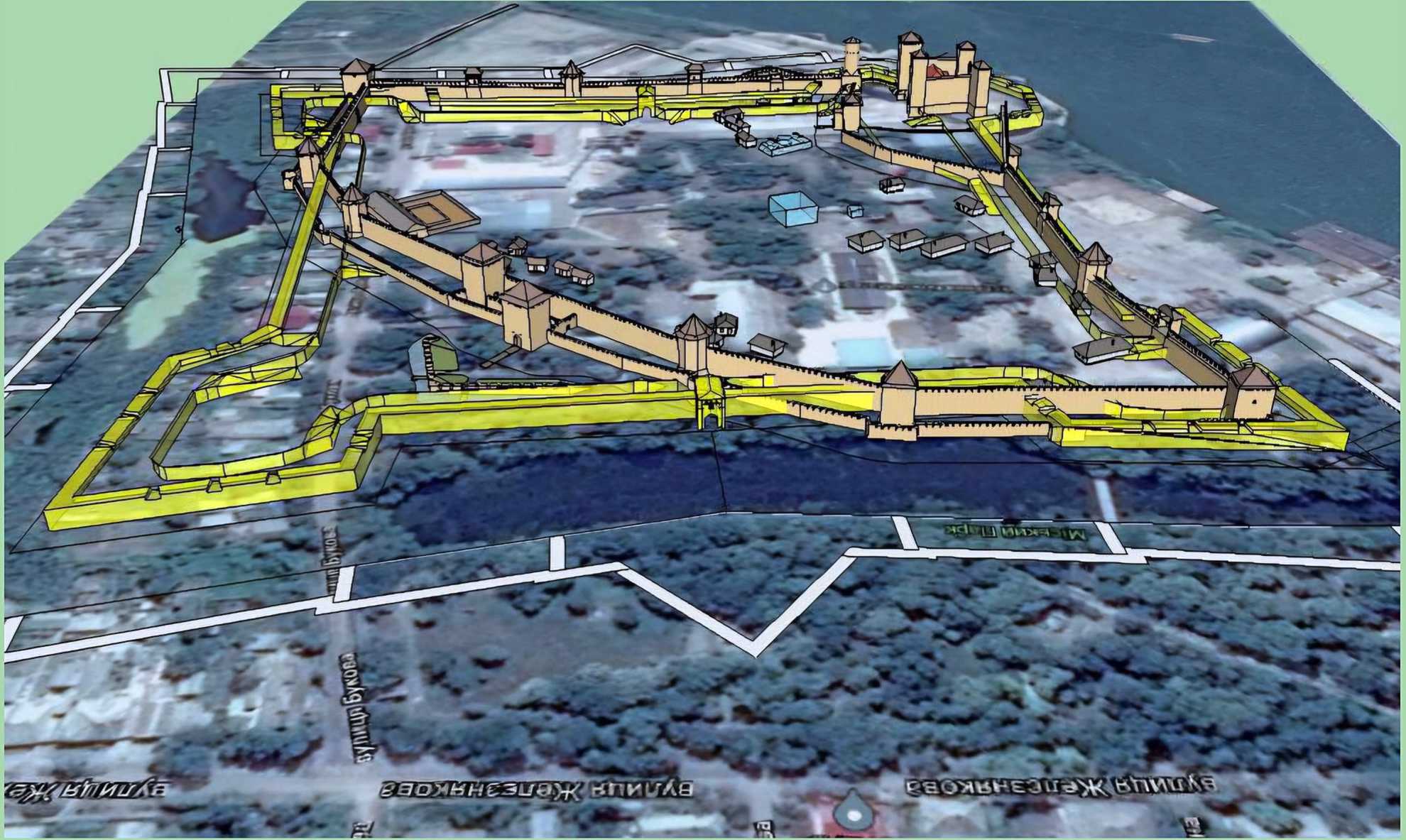 Моделювання із накладанням на супутникові знімки Євгена Гостинського: Кілійська фортеця в 1770 році і після її перебудови.