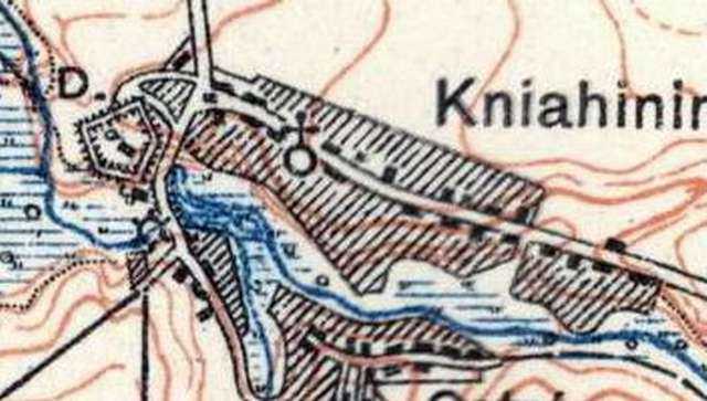 1930-і рр. Фрагмент польської картиРозмір зображення: 640:363 піксел З альбому «Дубенський форт-застава» Ліворуч, біля греблі – контур замку. Польська військова карта 1924 – 1939 рр.: |
