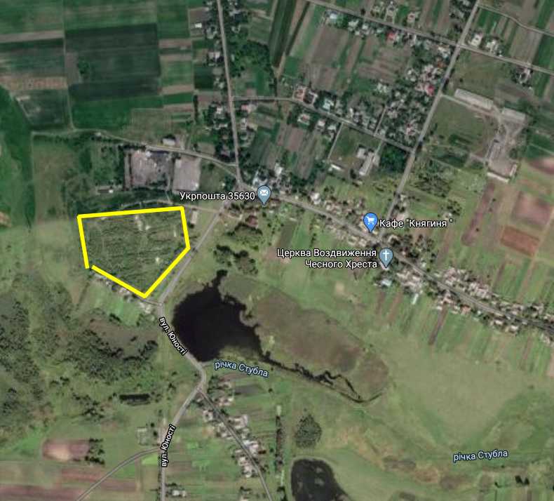 2020 р. Космічне фото GoogleРозмір зображення: 790:714 піксел Місце на карті Google: Жовтою рамкою виділено місце замку. Надбрамна башта знаходиться у північному фронті, біля північно-західного кута. |