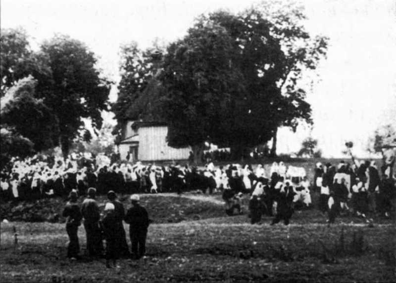 Загальний вигляд з позиції С1. Фото 1930-х рр.Розмір зображення: 800:573 піксел ЦДІА, ф. 408, оп. 1, спр. 1328, арк. 12. Джерело: Слободян В. Церкви Холмської єпархії. – Львів: Наукове товариство ім. Шевченка, 2005 р., с. 228. |