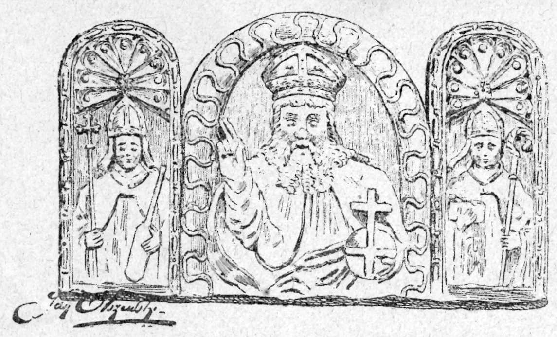 Фрагмент кам’яного вівтаря 15 ст.Розмір зображення: 1145:693 піксел Джерело: Sokołowski A. Dzieje Polski ilustrowane. – Warszawa, 1900, t. 2, s. 71. |