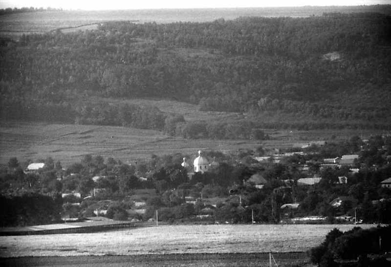 1991 р. Вид села з церквою з кручі біля с. Митків