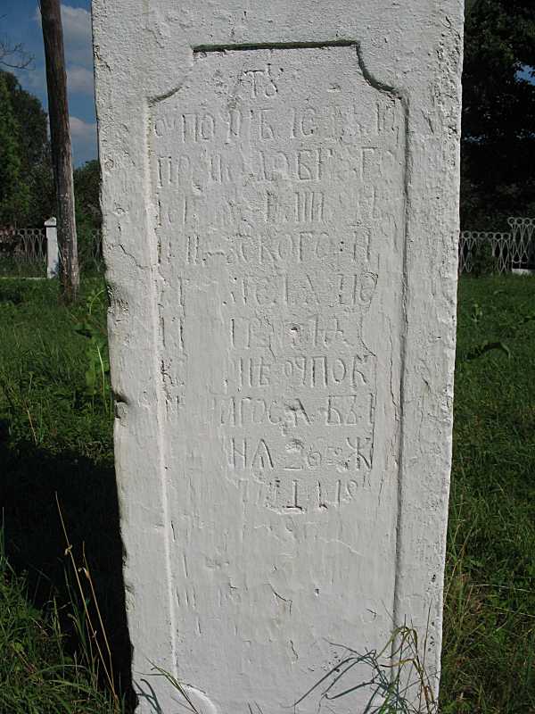 Постамент з написомРозмір зображення: 600:800 піксел Фото Зенона Боровця і Богдана Тхора, 12 серпня 2008 р. Напис погано збережений. |