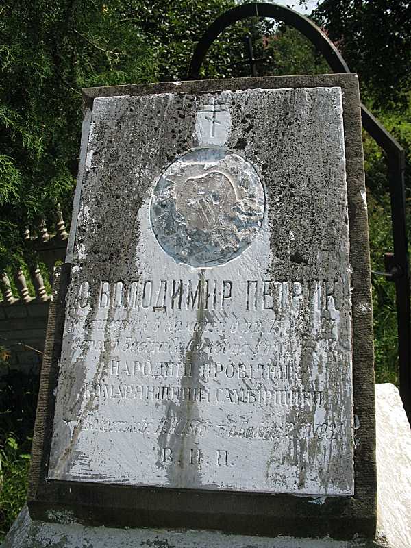 Напис: «О. Володимир Петрик, священик в Комарно в рр. […], парох в Бабині к[оло] Самбора в […] Народний провідник Комарненщини і Самбірщини. Вогостков [?] 12.02.1876 – † с. Бабин 2.03.1931».