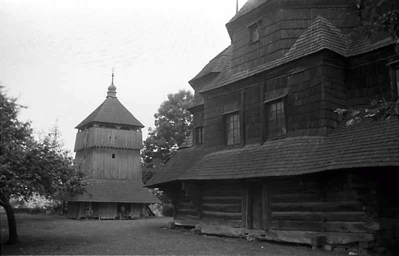 1989 р. Дзвіниця і південний фасад церкви. Вигляд з південного сходуРозмір зображення: 800:514 піксел 1989 р. 29 червня. Фото М.І.Жарких. Негатека, № 497-30. |