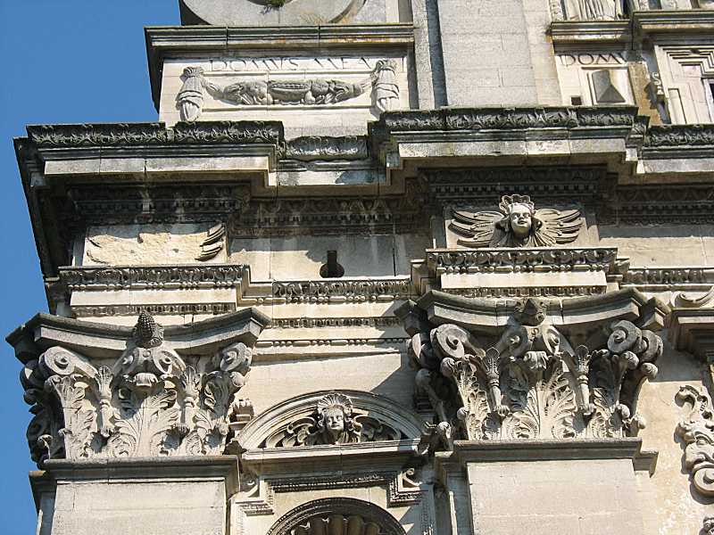 Ґзимс та капітелі західного фасадуРозмір зображення: 800:600 піксел Фото Зенона Боровця і Богдана Тхора, 12 серпня 2008 р. |