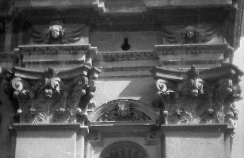 Бійниця і капітелі пілястрРозмір зображення: 800:518 піксел 1997 р. 13 серпня. Фото М.І.Жарких. Негатека, № 922-18. |