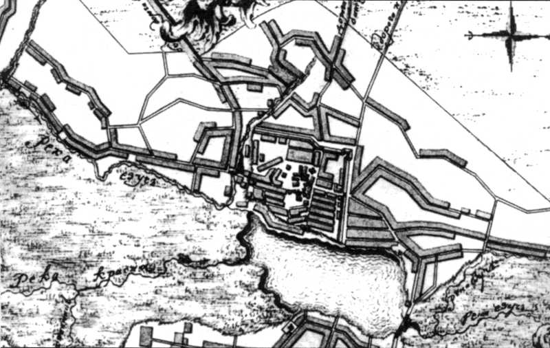 План фортеці кінця XVIII ст. Розмір зображення: 800:506 піксел Джерело: Пам’ятки України, 2001 р., № 4, с. 88. Попередня сторінка | Вище | Наступна сторінка
