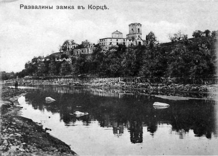 Підпис: «Руїни замку в Корці» [це при тому, що двоповерховий корпус на південь від надбрамної башти ще стояв!].