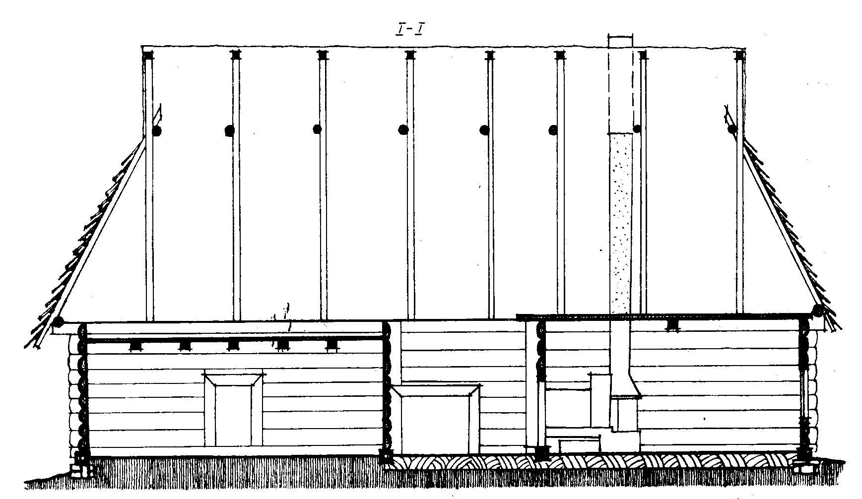 Поздовжній розрізРозмір зображення: 1737:1006 піксел Будинок у с. Корольова Руська (ЧССР). Поздовжній розріз. Перша половина XIX ст. Джерело: Народна архітектура українських Карпат. – К.: Наукова думка, 1987 р., с. 107. |