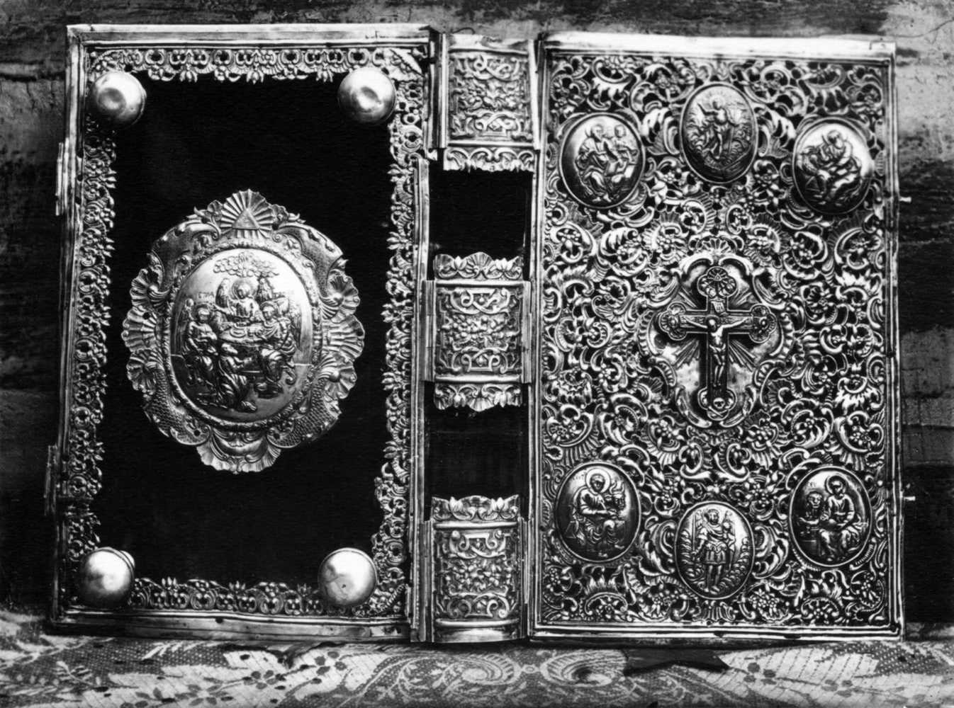 Обкладинка Святого Письма в Хрестовоздвиженській церкві. Фото Стефана Таранушенка і Павла Жолтовського з експедиції Харківського музею українського мистецтва. 1920-і рр. (?) Опубліковано 7.02.2021 р.
