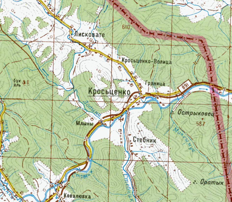 Карта (Кросьценко)Розмір зображення: 944:819 піксел Карта Київської військово-картографічної фабрики, масштаб 1:100000, аркуш 106, друк 2001 р. (за матеріалами 2000 р.). |