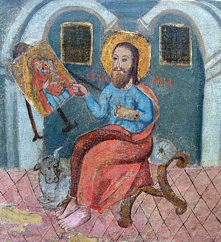Євангеліст Лука малює ікону богородиціРозмір зображення: 729:800 піксел Євангеліст Лука малює ікону богородиці. Ікона кін. 18 ст. 56: 54 см. З церкви архангела Михаїла у Кровиці Самій. Нині в музеї-замку Ланцуті. |