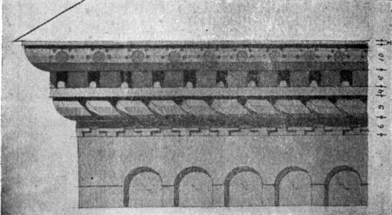 Різьблені дерев’яні карнизи церкви в м. Корсунь, Київщина. Обмір П. Юрченка.